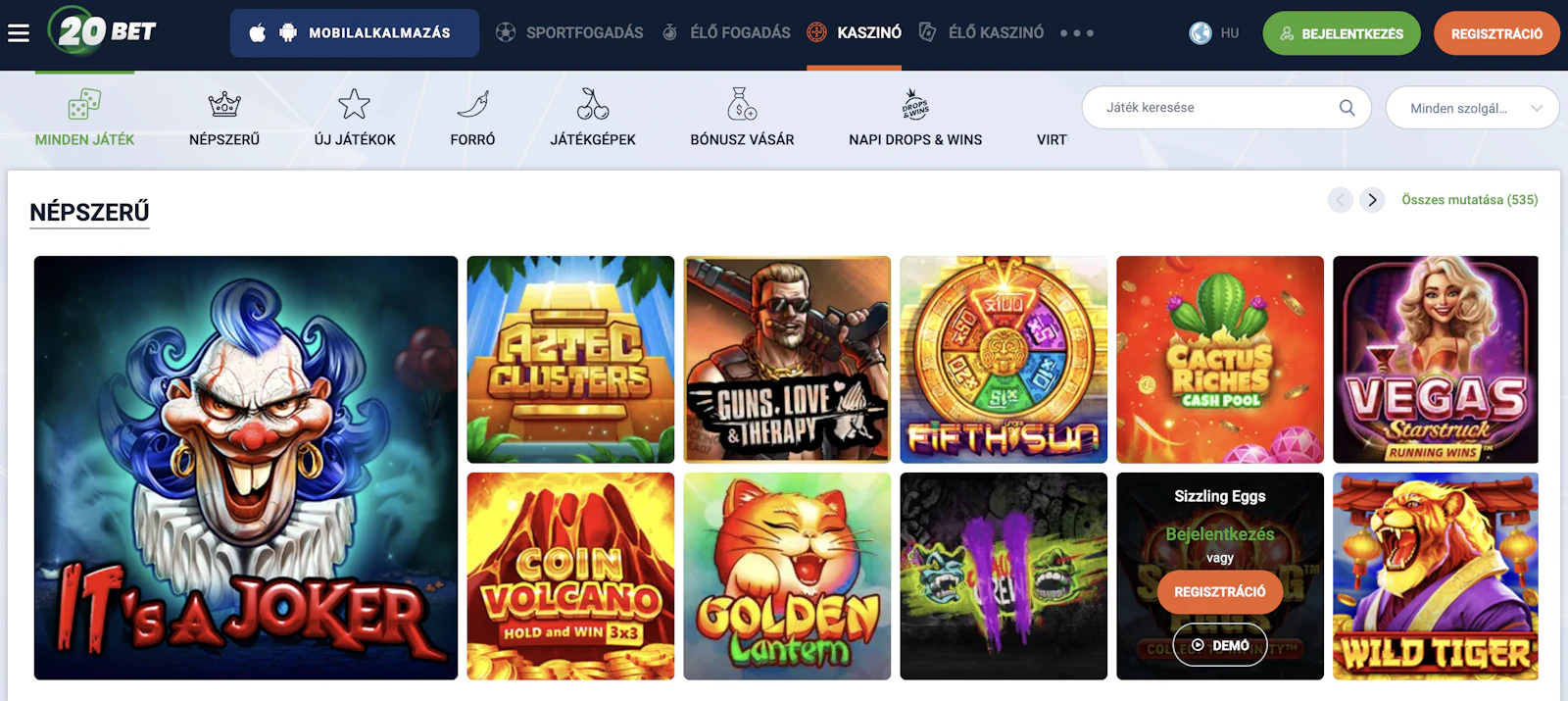 Sportokat tekintve tehát a 20bet hozza azt, ami elvárható.