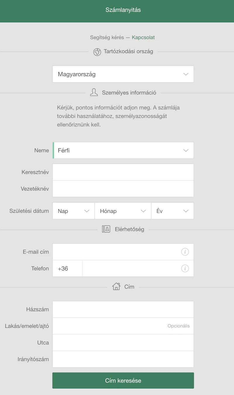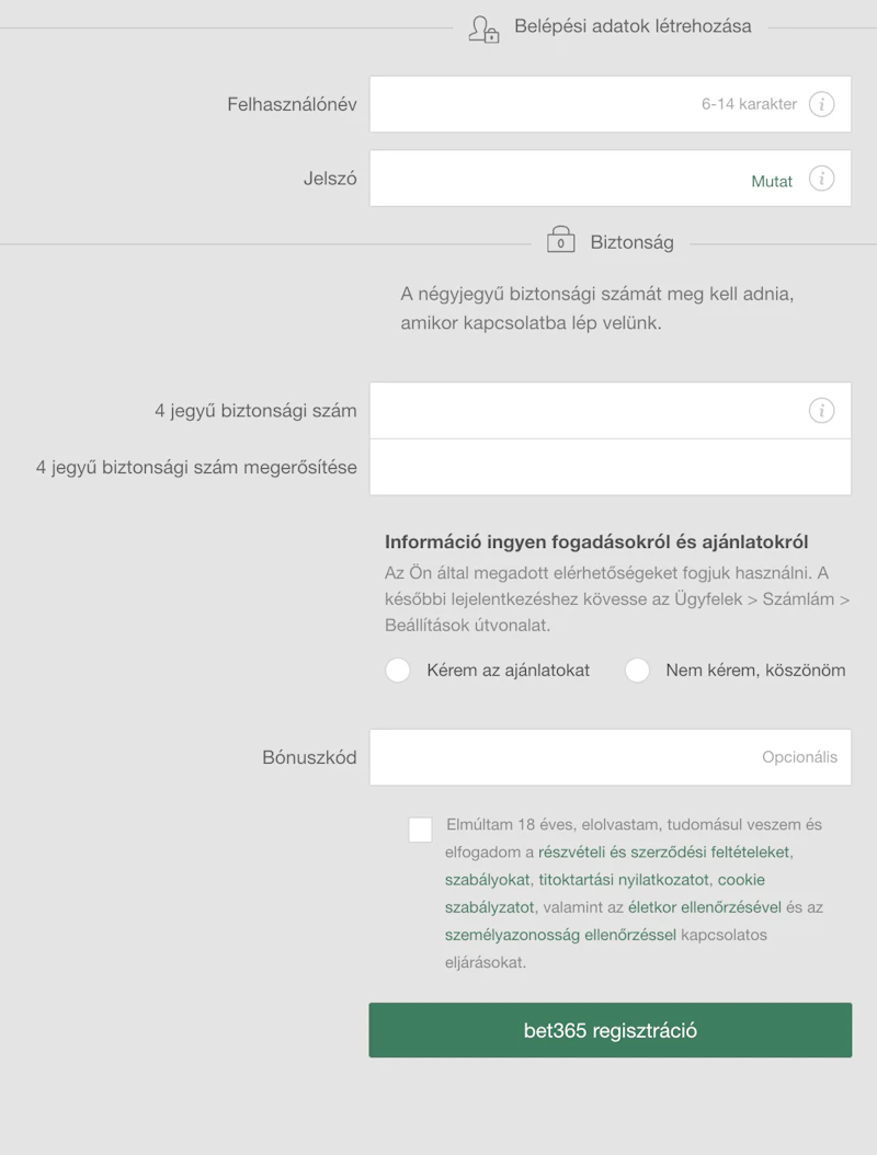 A bet365 regisztrációs lap elején a következő adatokat kell megadni: