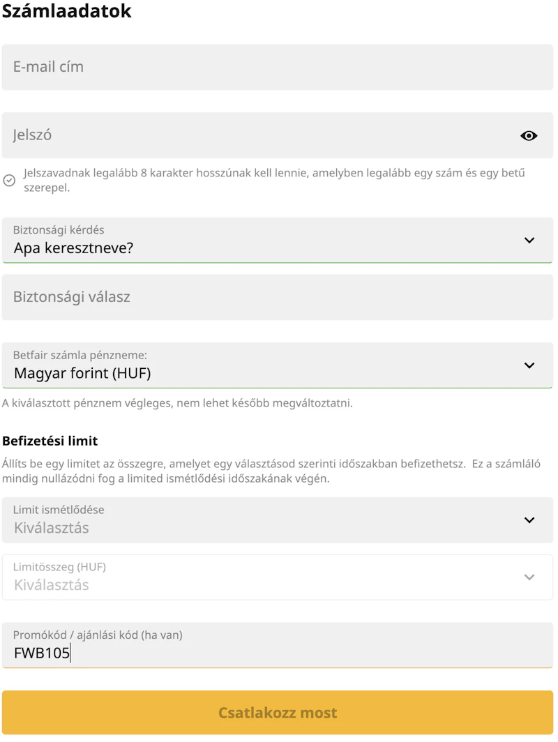 Már csak a regisztráció maradt. Mivel nincs szükség Betfair alternatív linkre az oldalhoz, így bármikor könnyen elérhető és egyszerűen beléphettek, vagy regisztrálhattok az oldalon.