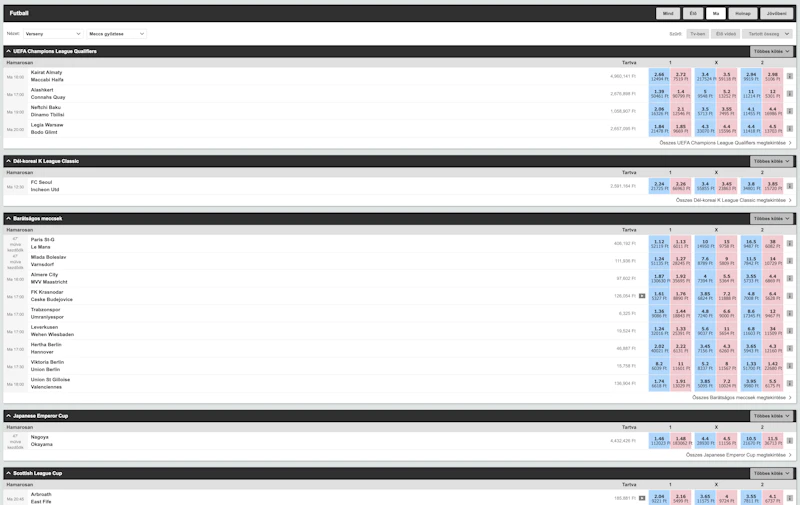 Az oddsok esetenként itt a legmagasabbak, így mindig érdemes benézni.