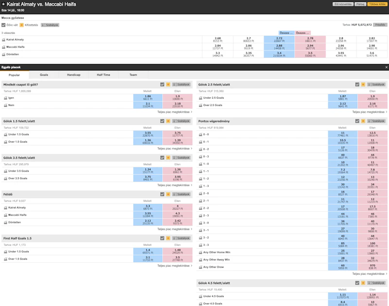 Ami garantált, hogy akár a Tőzsdén, akár a megszokott Sportfogadás felületen az oddsok magasak, a piacok és funkciók pedig teljes mértékben alkalmazkodnak a modern online sportfogadáshoz.