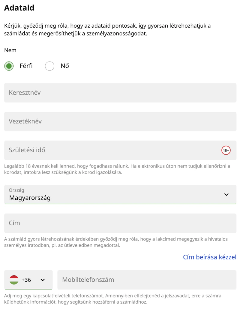 A Betfair regisztráció második lépésében néhány személyes adatot kell megadni: