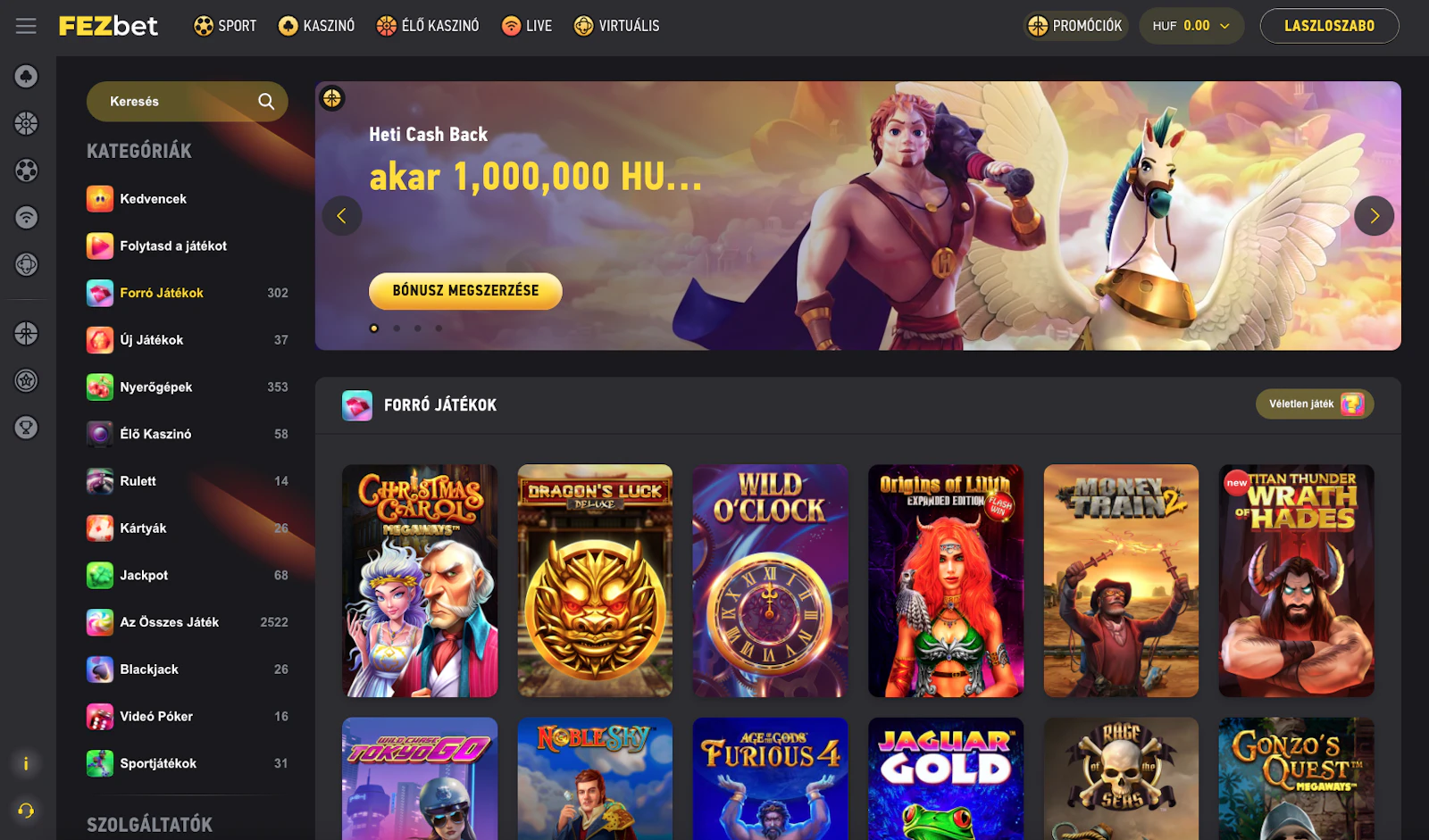 | Kaszinó szolgáltató | többek között Hacksaw Gaming, Playtech, Skywind, Netent, Pragmatic. (A teljes lista elérhető a FEZbet weboldalán.) |