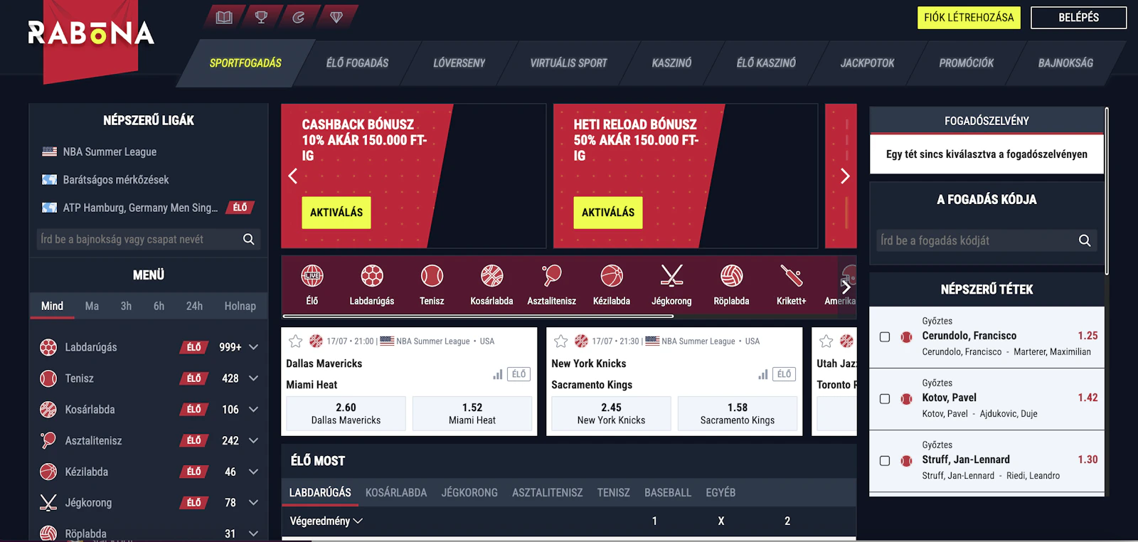 Népszerű Rabona sportfogadási funkciók: