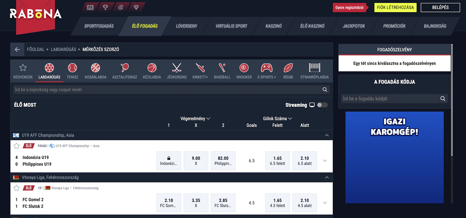 Tudok Rabona élő fogadásokat kötni?