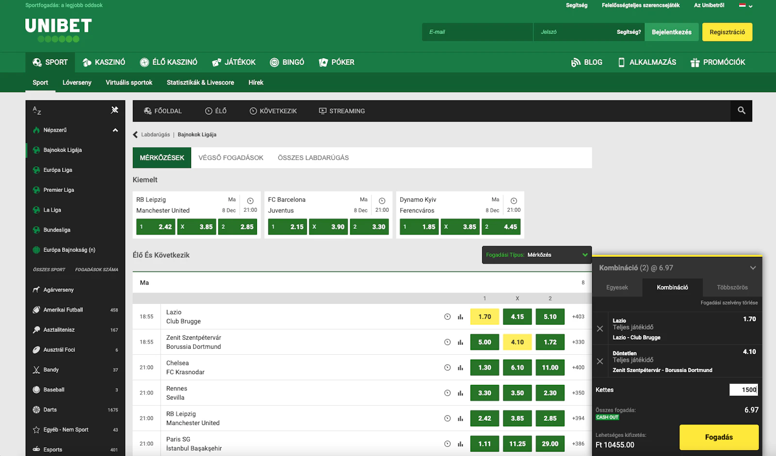 Legyen szó akár az egyszerű fogadásokról, a mérkőzés előtti, vagy az élő fogadásokról, kombinált piacokról, az Unibet garantáltan a legjobb oddsokat kínálja.